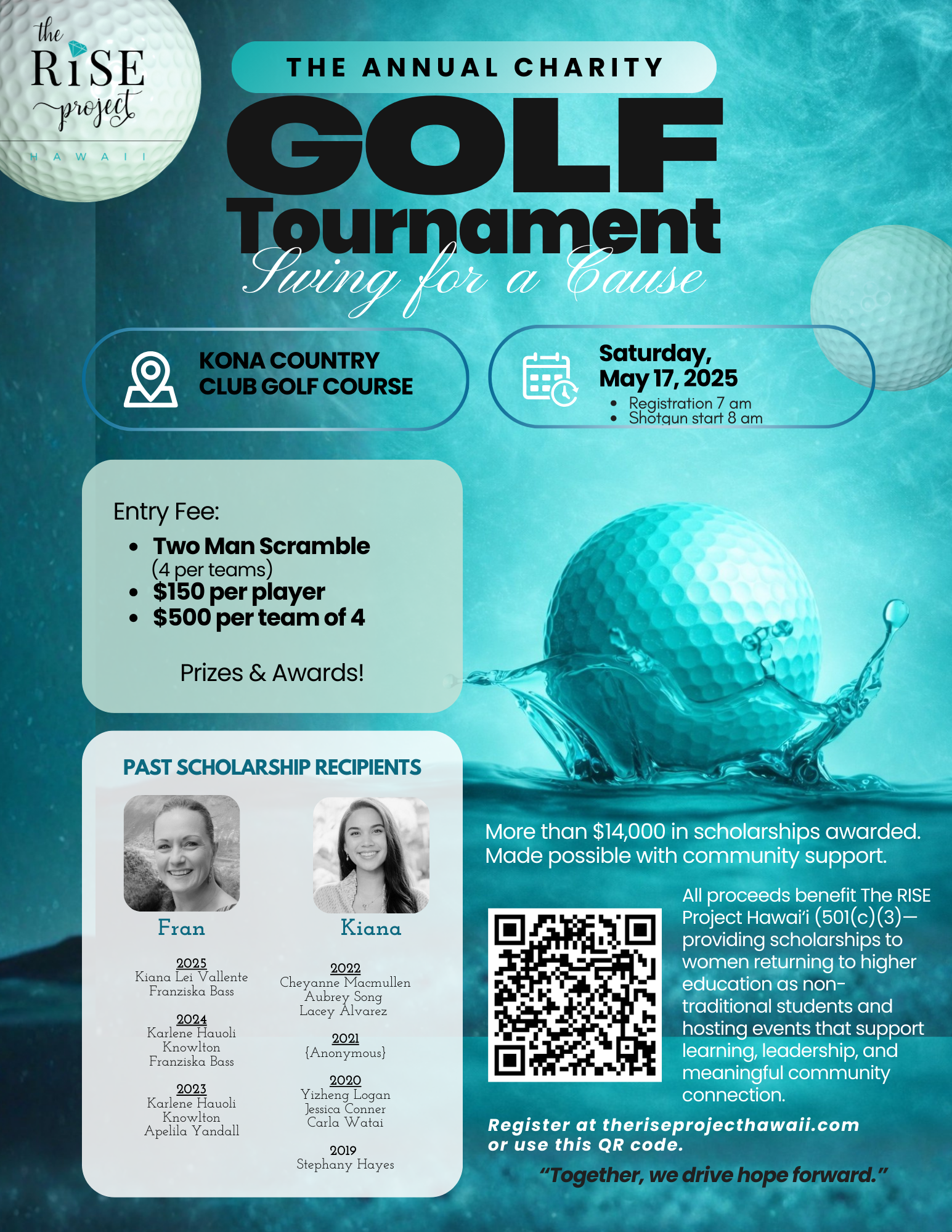The RISE Project Hawaiʻi is proud to host our 2026 Scholarship Fundraiser Golf Tournament on Sunday, May 17, 2026, at the beautiful Kona Country Club Golf Course.